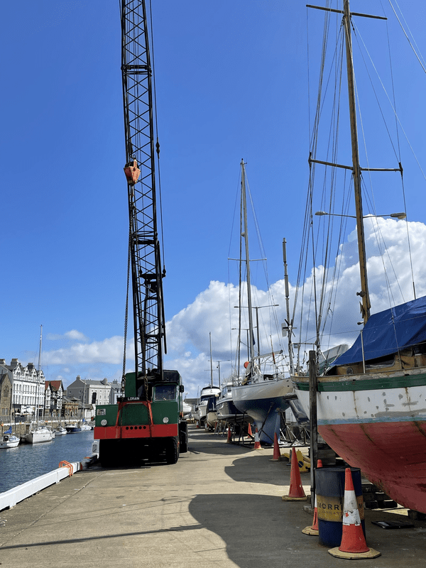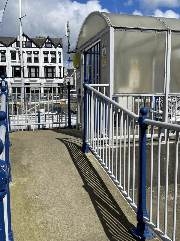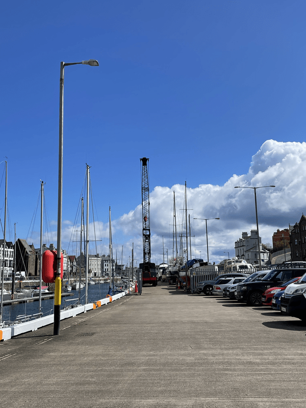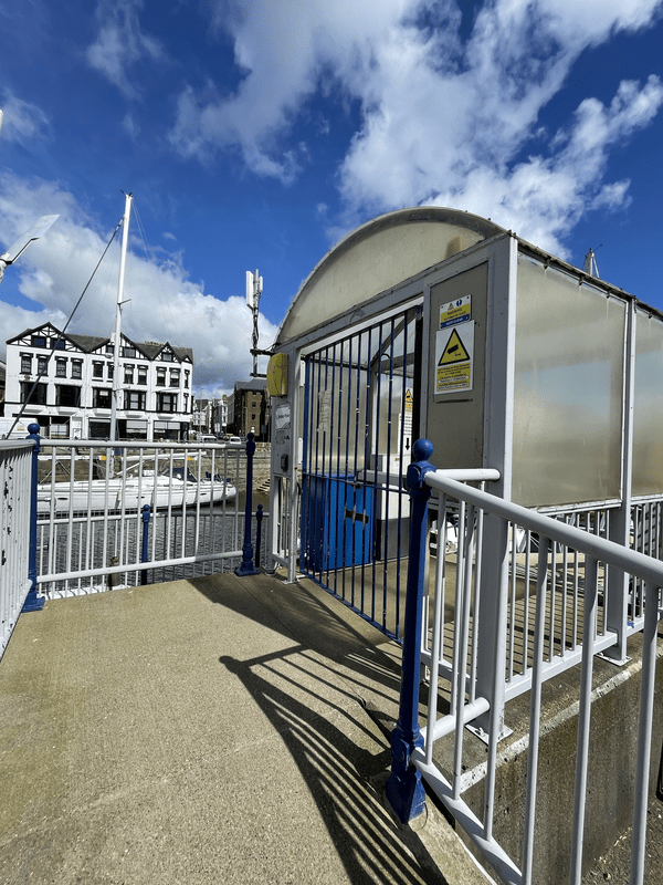 Access is by turning off Bridge Road, Douglas opposite Key West Apartments. This takes you onto the Tongue in Douglas past Douglas Bay Yacht Club. You then need to walk though the area of boats stored on the quay to the end to access the marina. There is a gate to the marina but the boat is adjacent to the gate so someone will come up and open the gate for you.