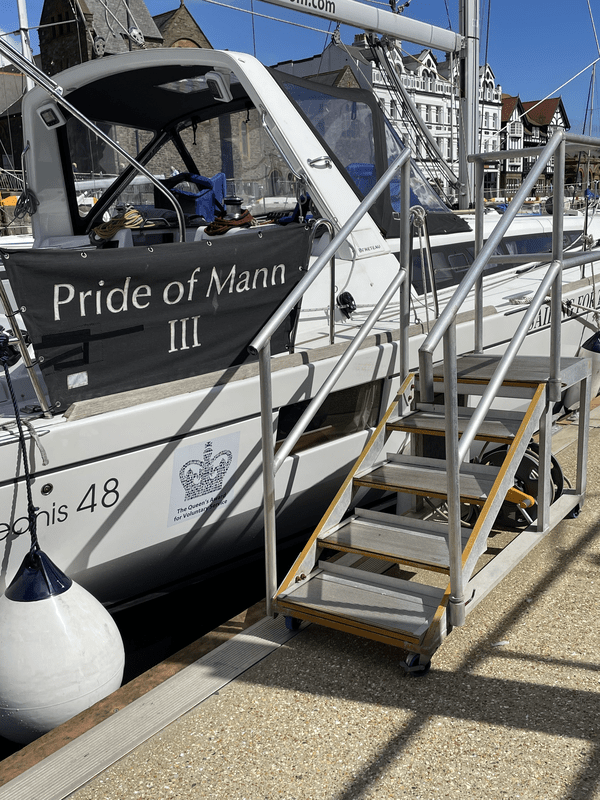 The yacht is one of biggest boats in Douglas Marina. It is a 2014 Beneteau Oceanis 48 that the charity purchased new and adapted to meet our specific needs. It is 48 foot long and has lots of interior space.